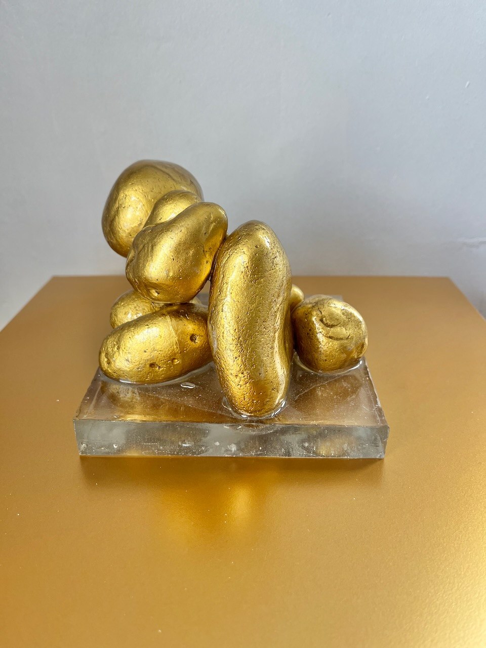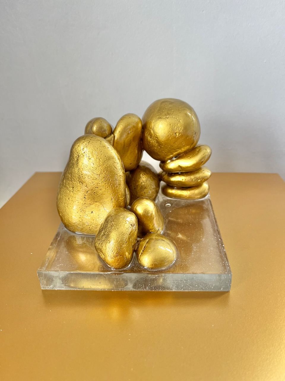 Unearthed as if from a hidden chamber, Echoes of Ba’ja recalls the fallen doorways of a Neolithic mountain town where gold light once touched stone. River-worn forms rise and lean in quiet balance — relics of ritual, memory, and human touch. Each fragment holds an ancient resonance, a whisper from deep time, reimagined in gilt as an offering to the sun.