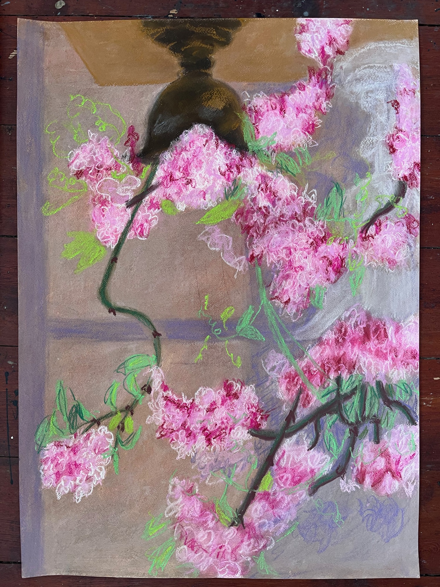In "Lilacs," the artist masterfully captures a moment of natural splendour within the confines of a still life. This pastel artwork unveils a tableau where beauty knows no bounds, as an ensemble of lilacs and sweet peas takes centre stage.