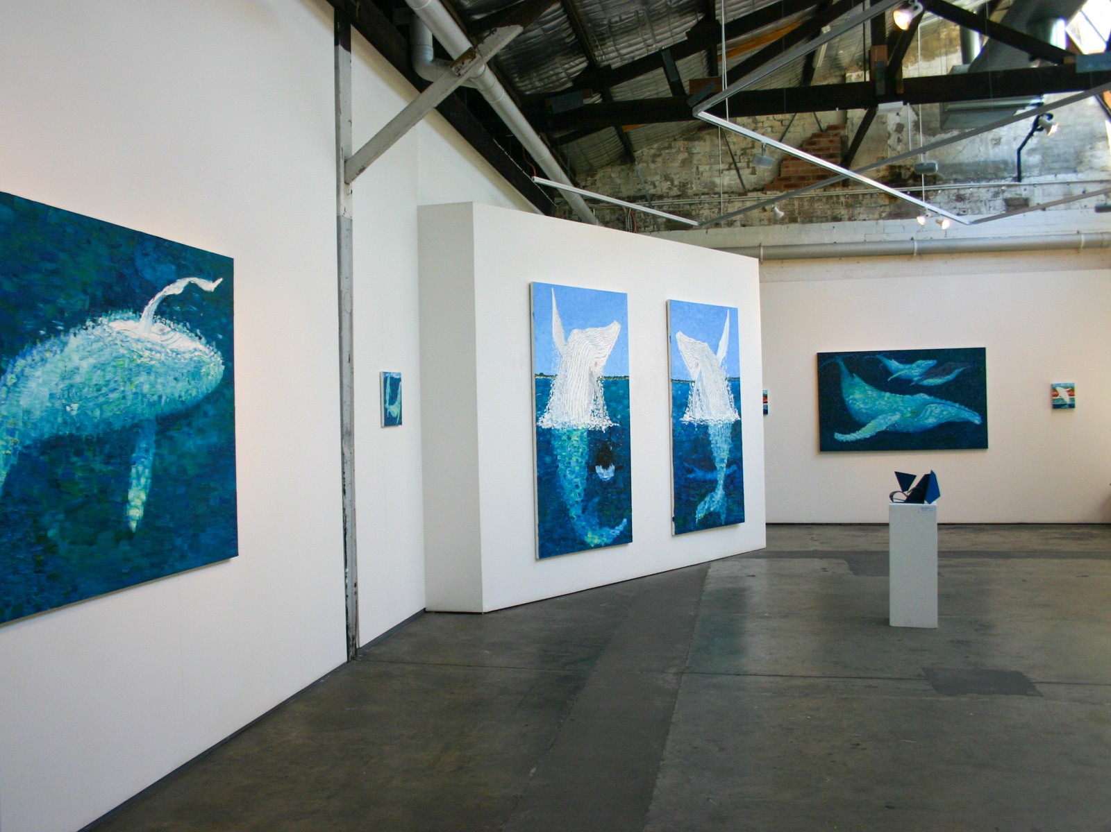 When I began painting Migaloo he represented the vulnerability of the humpback population to me. Whaling in the southern ocean is still done for "Scientific Research" by the Japanese. This Migaloo-themed series of paintings tells the story of his journey up and down the coast while also highlighting potential threats to his well-being.