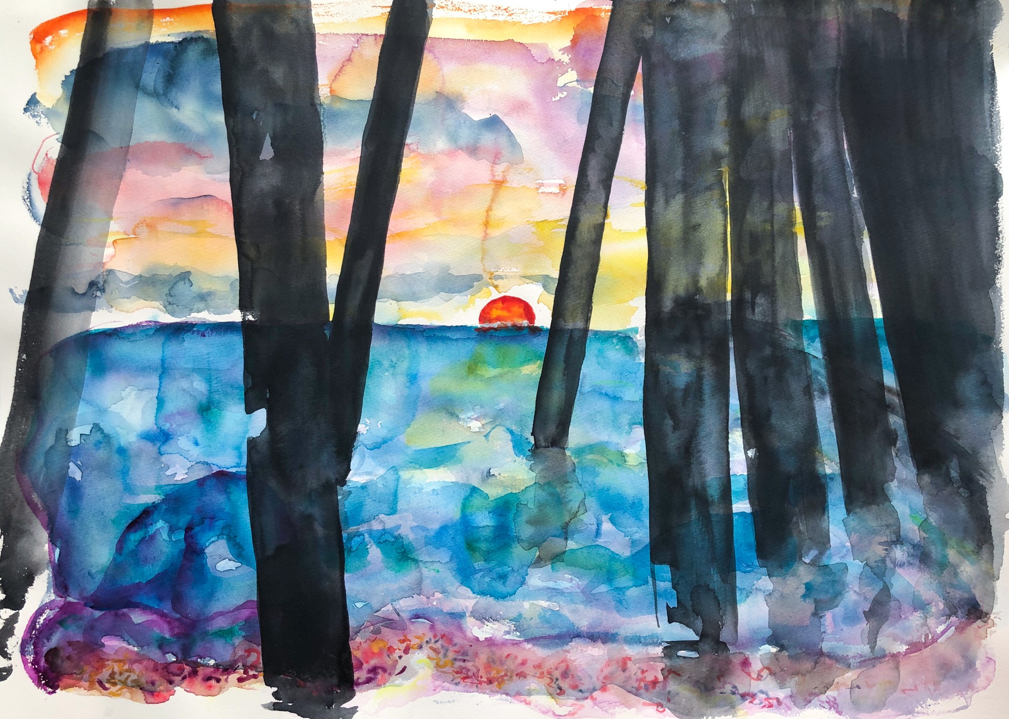 I love the abstract shapes the pillars holding up the Pier make against the horizon.