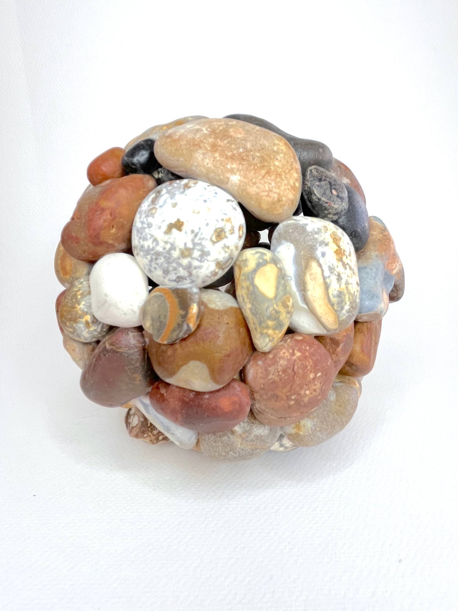 Spheres 4-15 extends its existential inquiry to the cosmic scale, echoing the patterns of solar systems and the infinite universe. At its core, a distinctive piece of rhyolite represents a celestial body—a fragment of volcanic origins born from the earth’s fiery depths, embodying the transformative forces that shape both planets and lives. Its swirling patterns suggest ancient star maps, a reminder of our connection to the vast and unknowable cosmos.