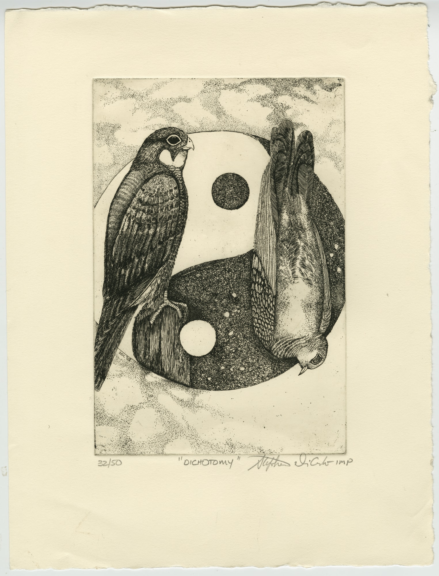 Image of Peregrine Falcon and Mourning Dove over Yin and Yang.
