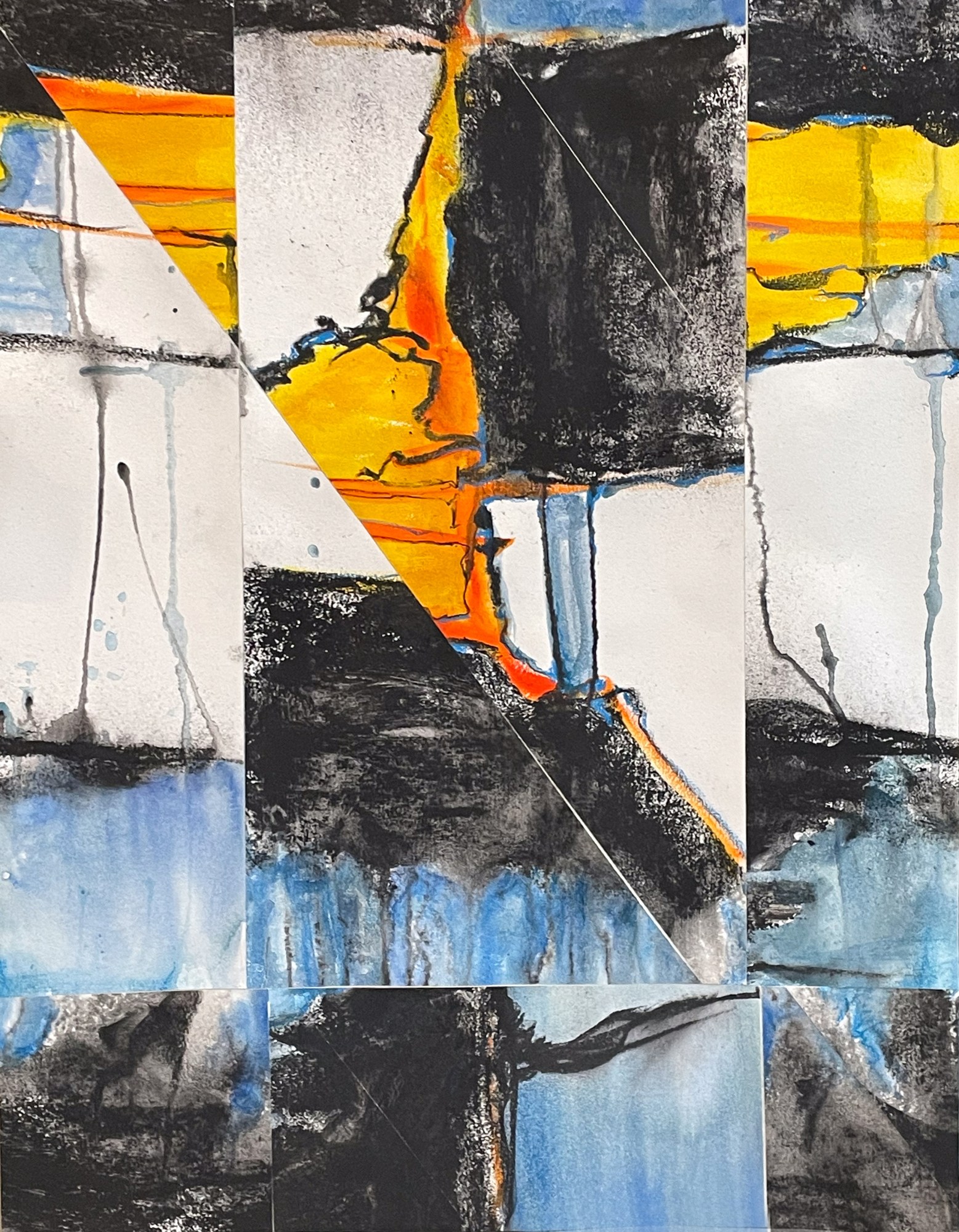 2024 was a year of huge transitions including a complex broken leg and a relocation of the studio! Yellow, complex yellow mixed from four hues of gouache, became symbolic of hope, aspiration and new beginnings. But that complex optimism was hard and constantly under pressure by circumstances. This body of works on paper came out of that timeā¦indeed, poured out with urgency.