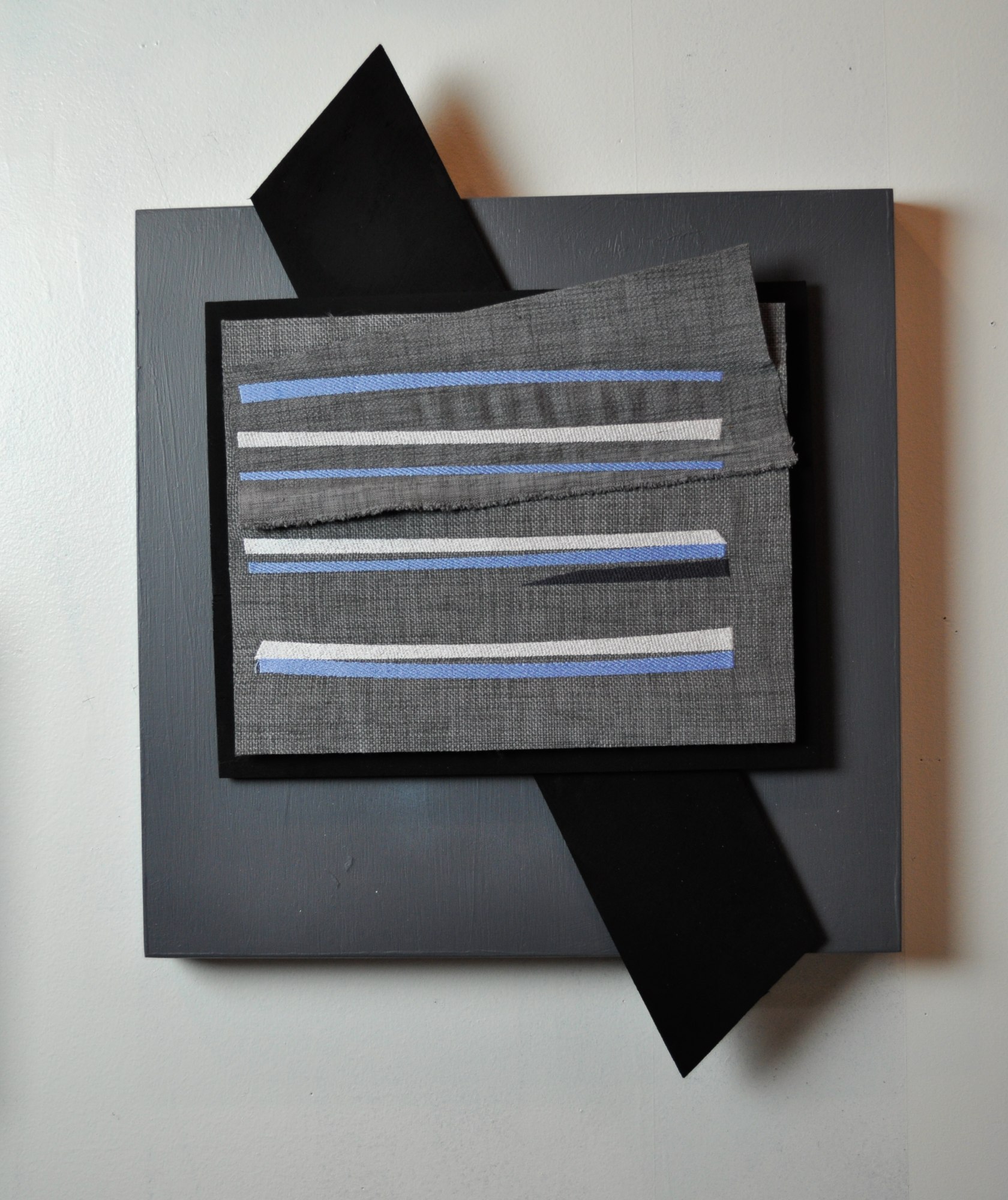 A mixed media piece that floats on the wall, casting shadows. Delicious textures and quiet colors.