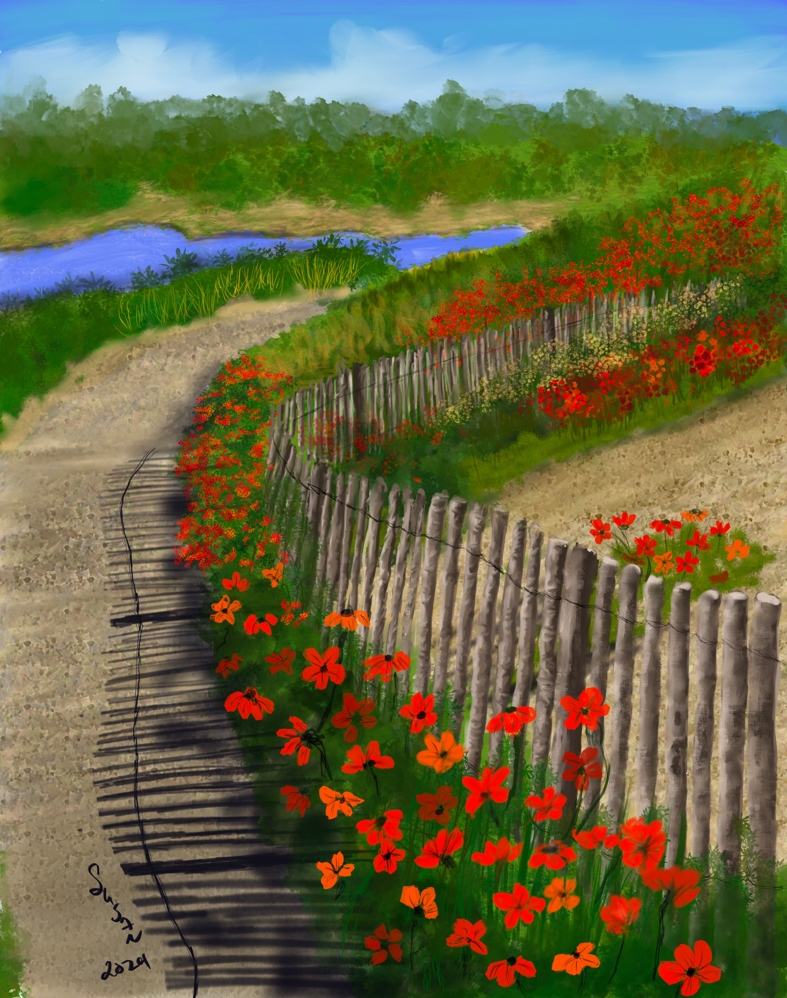 Primitive Folk Artist, using digital media. I love Landscapes and Florals