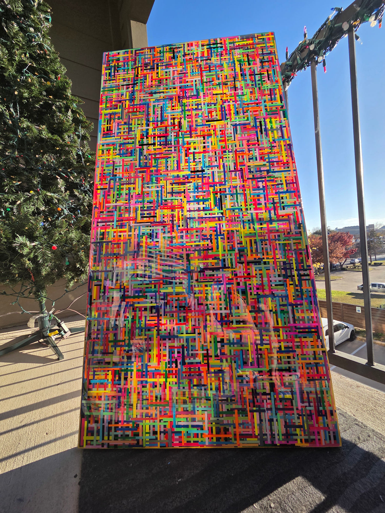 • BRIGHT, BOLD, COLORFUL MOSAIC STYLE MULTILAYER RESIN COLLAGE ON GALLERY CRADLED WOOD PANEL, c. 2025