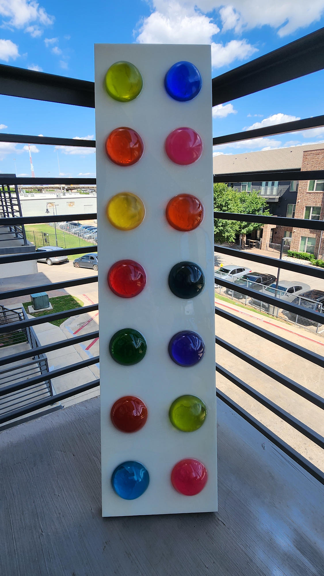 I just finished making this fun and colorful piece of art using casting resin and Art Resin.