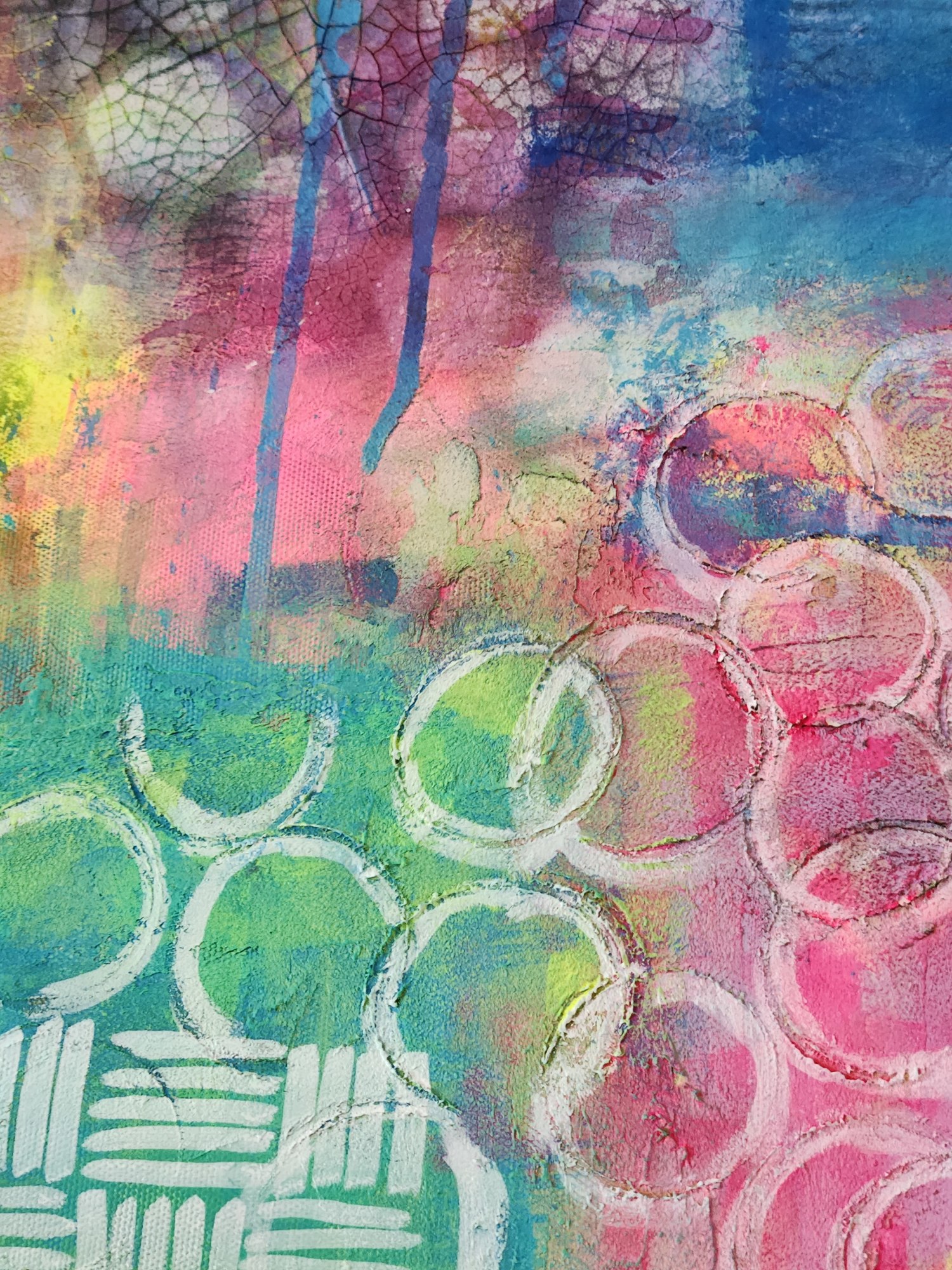 Materials: wood panel, Acrylic Paints, Canvas, Textures