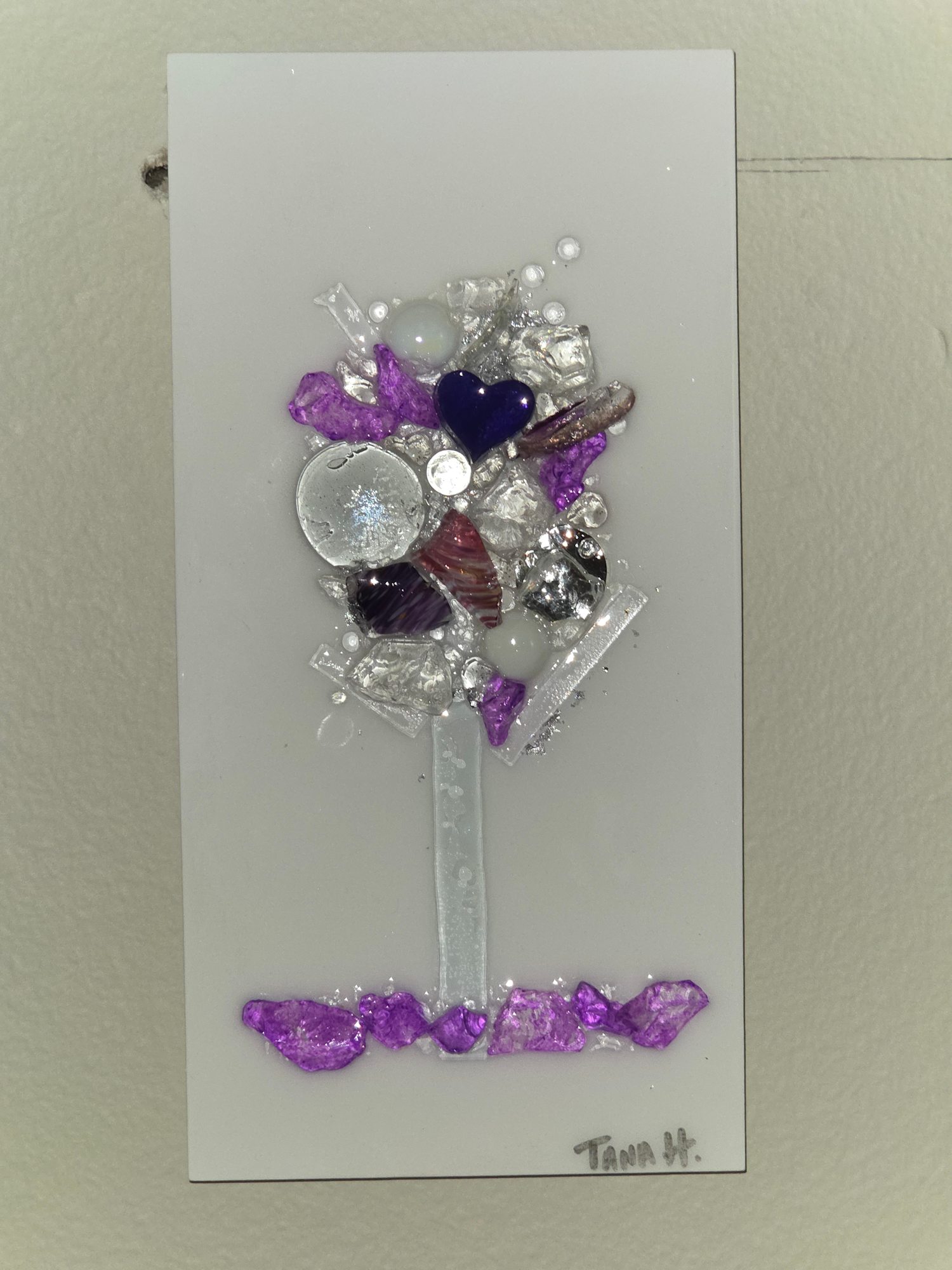 • Resin Glass Abstract Tree in Purple, Voilet with Silver Leaf and Mirror Glass 6x12, c. 2025