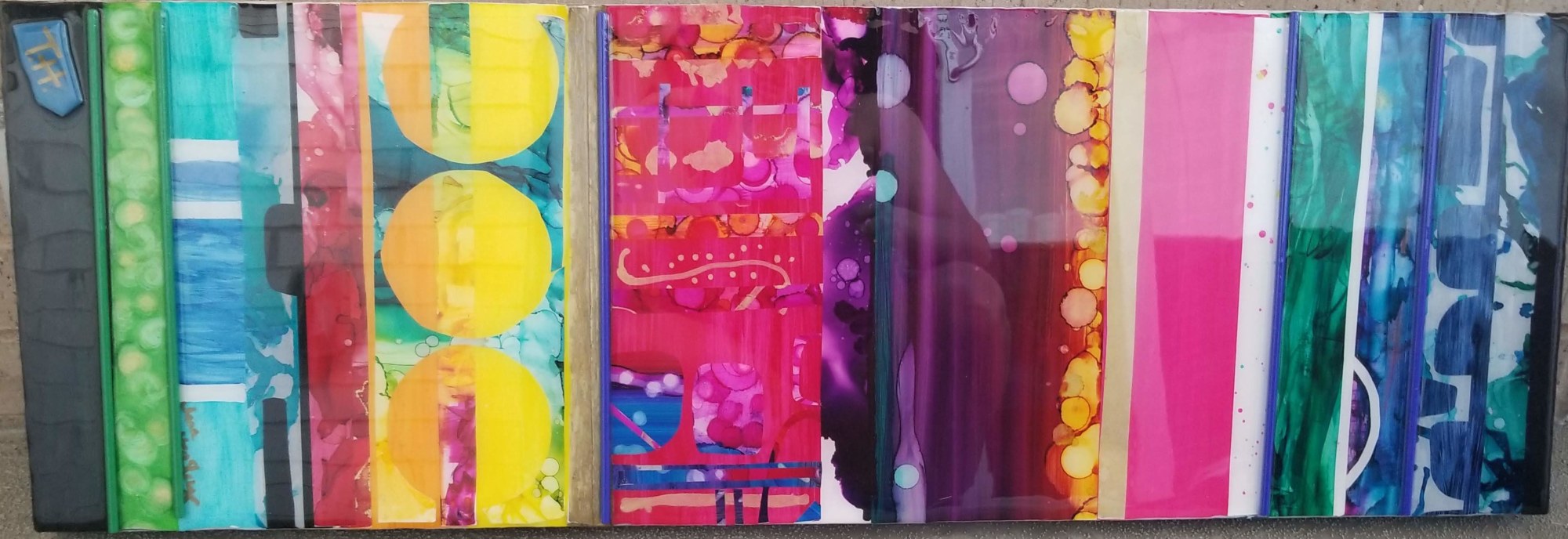 Abstract Resin Collage Art with Glass Accents