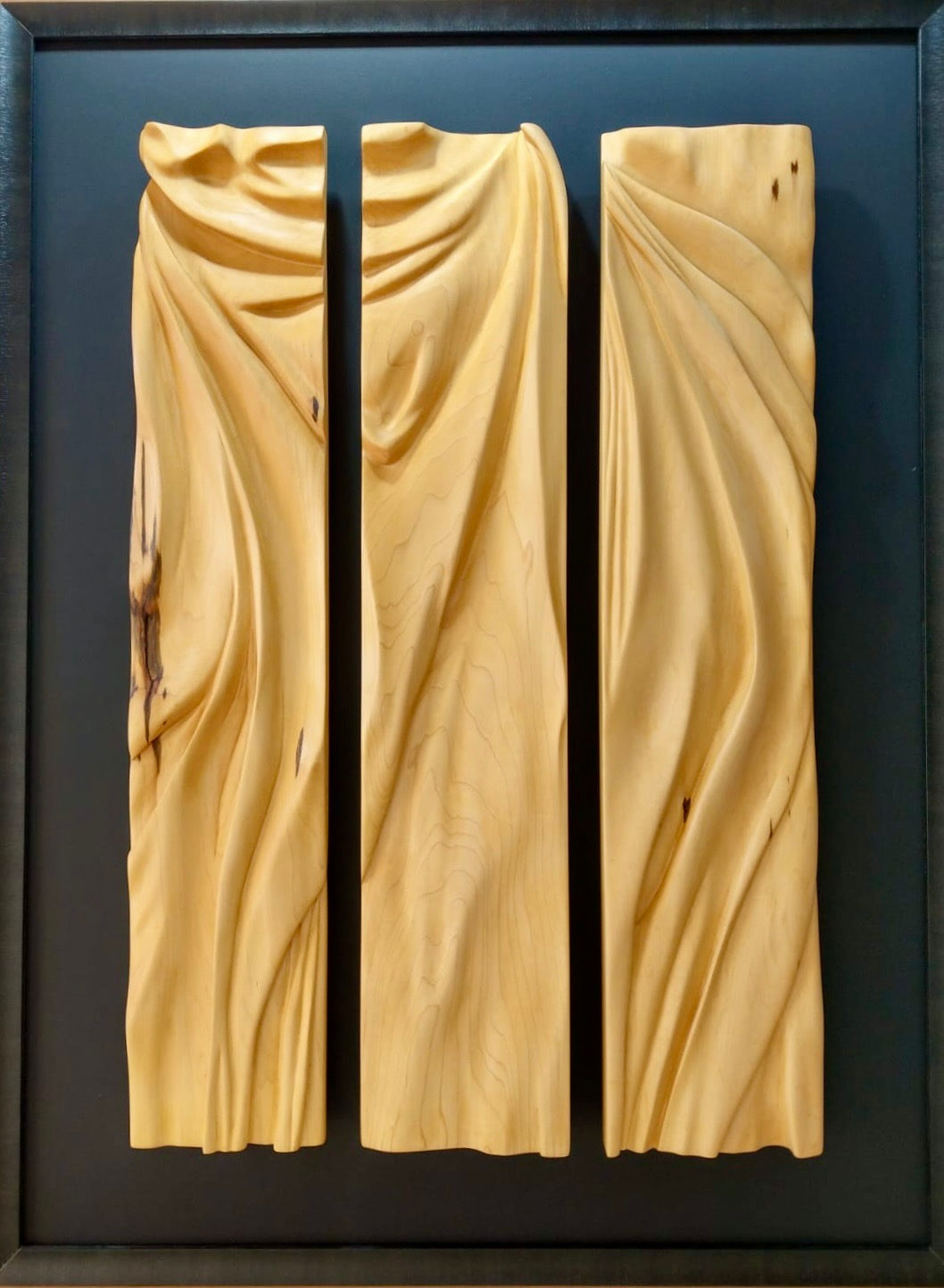 This wall sculpture, carved from Linden wood, explores the ebb and flow of life through a series of three folded forms. The curves and folds represent the shifts, challenges, and moments of change we all experience. The softness of the wood reflects resilience and adaptability, while the play of light and shadow highlights the constant movement of our personal paths. This work invites reflection on how we move through change and find strength in continuity.