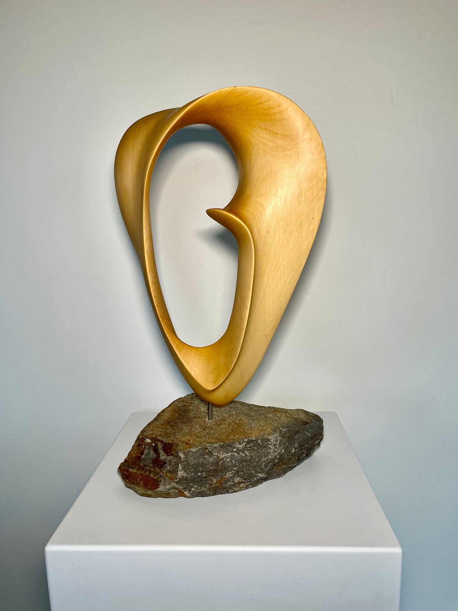 Carving this ancient and exquisite piece of Huon Pine, I found myself immersed in the fascinating contours of a Möbius strip. As I shaped the wood, navigating the intricate balance between inner and outer, I embarked on a journey of discovery. Each stroke of the chisel was a step towards finding balance, a process both humbling and exhilarating. In surrendering to the wood's natural flow, I learned the art of letting go, of trusting in the unfolding path before me. And in that journey of relinquishing control, I found a profound sense of resolution, a harmony echoing the Möbius strip's infinite loop.