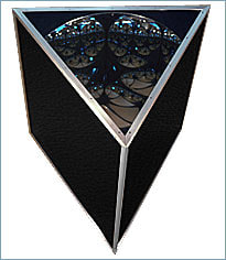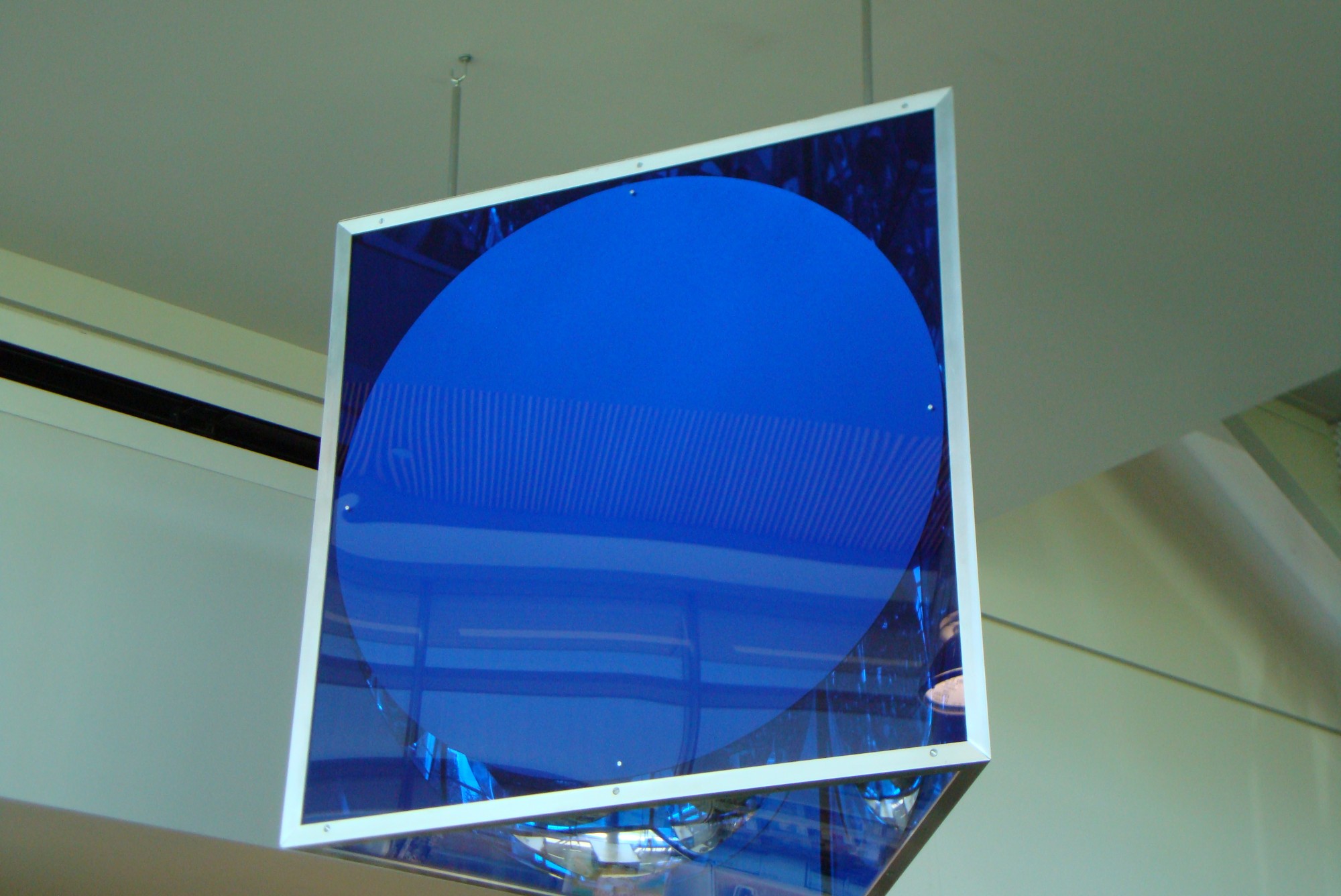 Roger Shipley's earliest plexiglass pieces involve the interrelationship between primary simplified forms. Circles and squares of various sizes were worked together to form the visual components of the sculpture. The plexiglass pieces incorporate mirrored surfaces to enhance the visual space within the sculpture and to involve the viewer and the surrounding setting within the reflections of the piece. There is a strong emphasis placed on figure-ground forms and their integration through color and shape.