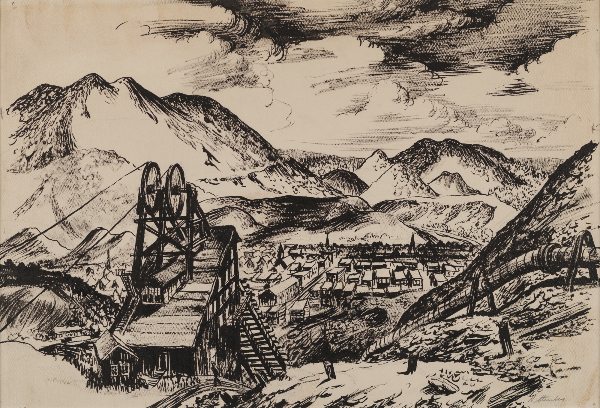 The selection of works by Harry Sternberg owned by the California Center for the Arts, Escondido Museum are an excellent representation of many of the series completed by Sternberg over the course of his impressive artistic career. "Mahanoy City, Pennsylvania" represents Sternberg's powerful early drawings down in situ at the coal and steel towns he visited in Pennsylvania as a result of a 1936 Guggenheim Fellowship.