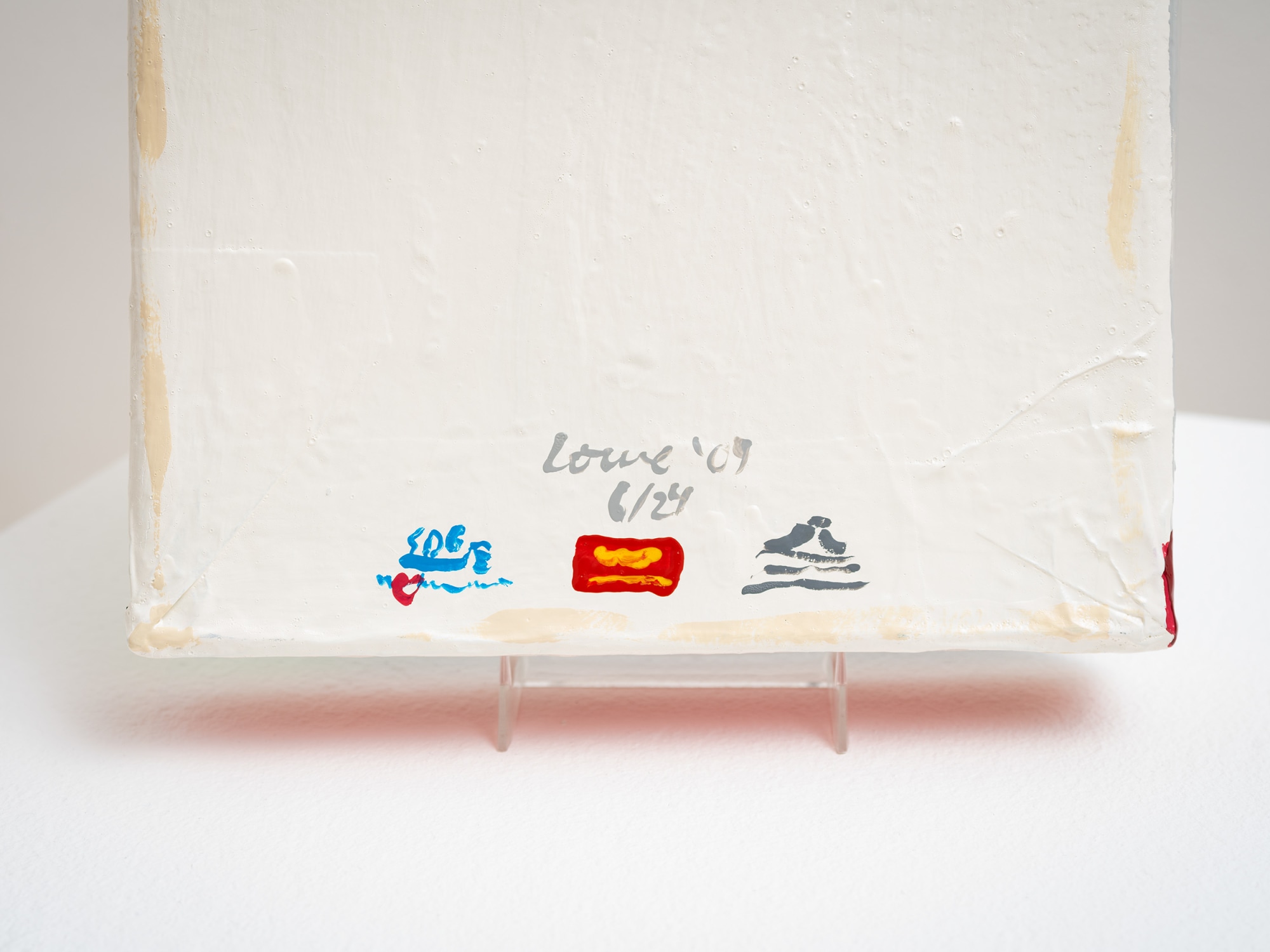 Jean Lowe is known for her paintings and installations that showcase commentary on contemporary society in humorous yet cerebral ways. Lowe was born in 1960 in Eureka, California. She received her BA from the University of California Berkeley and her MFA from the University of California, San Diego, where she served as a visiting lecturer from 1992 to 2008. Frequently employing satire, Lowe creates sculptural representations of everyday objects using papier-mâché and paint. She is known for her papier-mâché books and has created a large collection of such with evocative and amusing titles.
