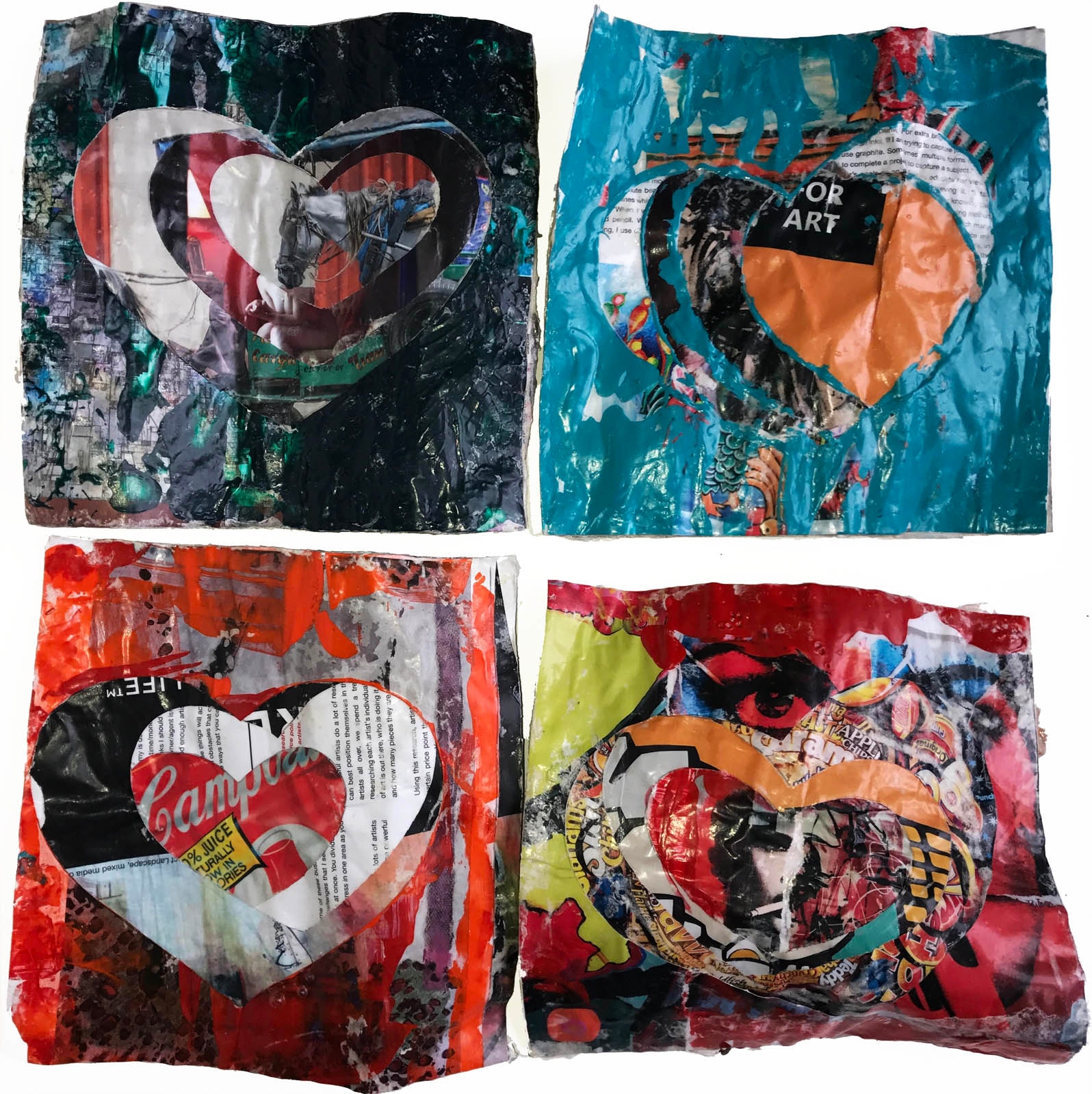 heART Blue is part of the 3R project (Reuse, Reclaim, Recycle), our Green Choices Art initiative. It is papier-mâché made of reclaimed catalogs, magazines, newspapers and card stock with acrylic. Love for our planet and for one another, open to your interpretation. it is sculpted into a wave shape to suggest movement. UV varnished for durability. Signed on verso. Ready to hang.
