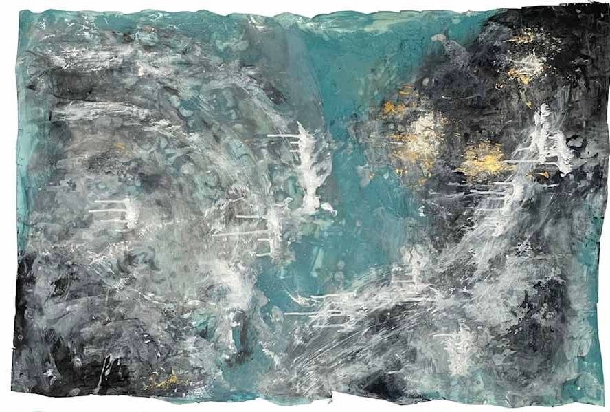 Inspired by the sea and the different stages of waves this piece is created with Acrylic and Encaustic on paper. Deckled edges.