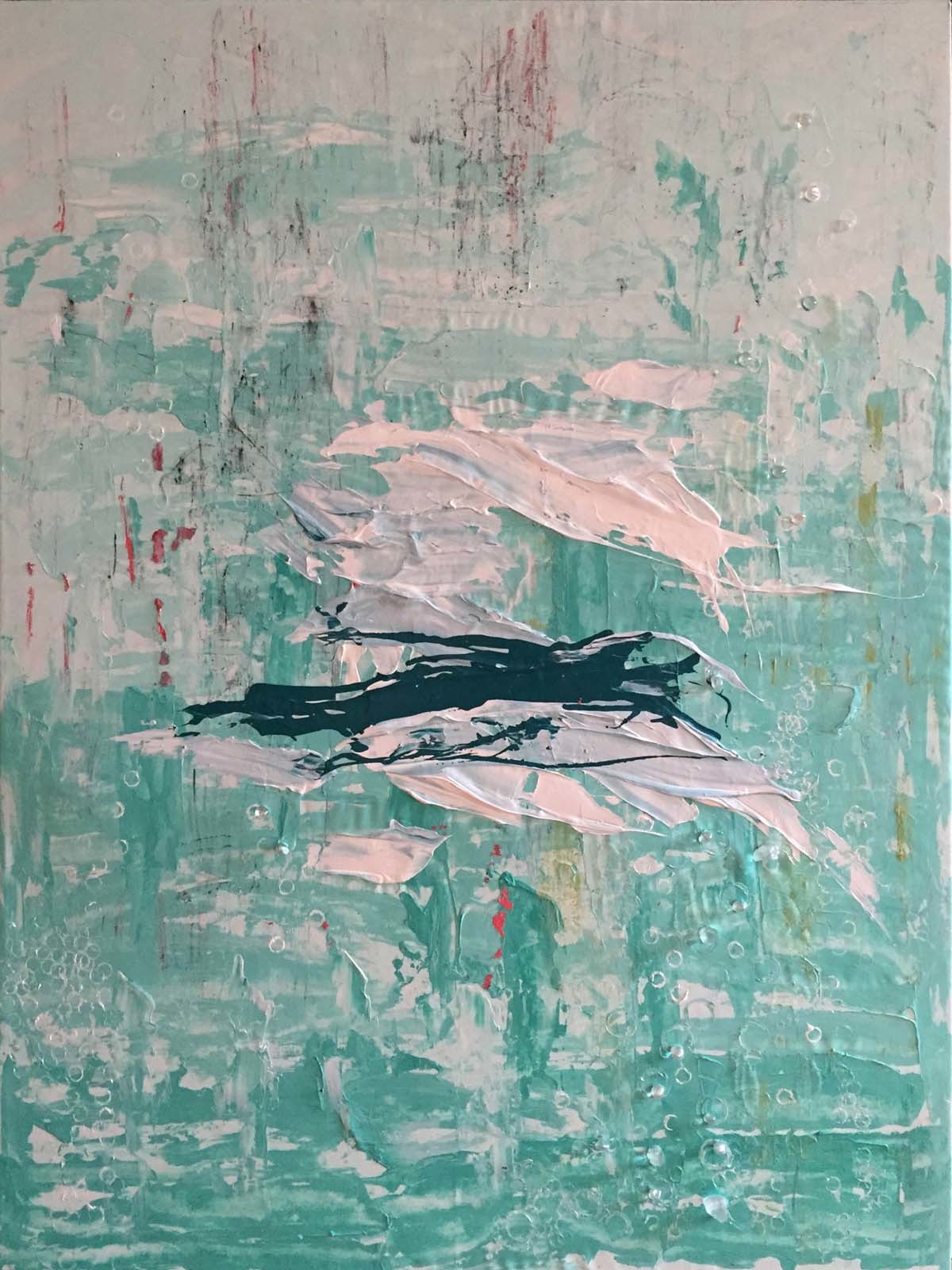 Dreaming of ocean depths and creating an abstraction based on reminiscent images of past dives. This is the first of an aquatic series. Signed and ready to hang with heavy duty D-rings on stretched canvas.
