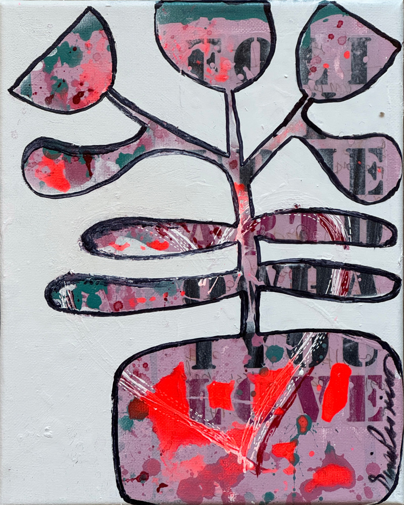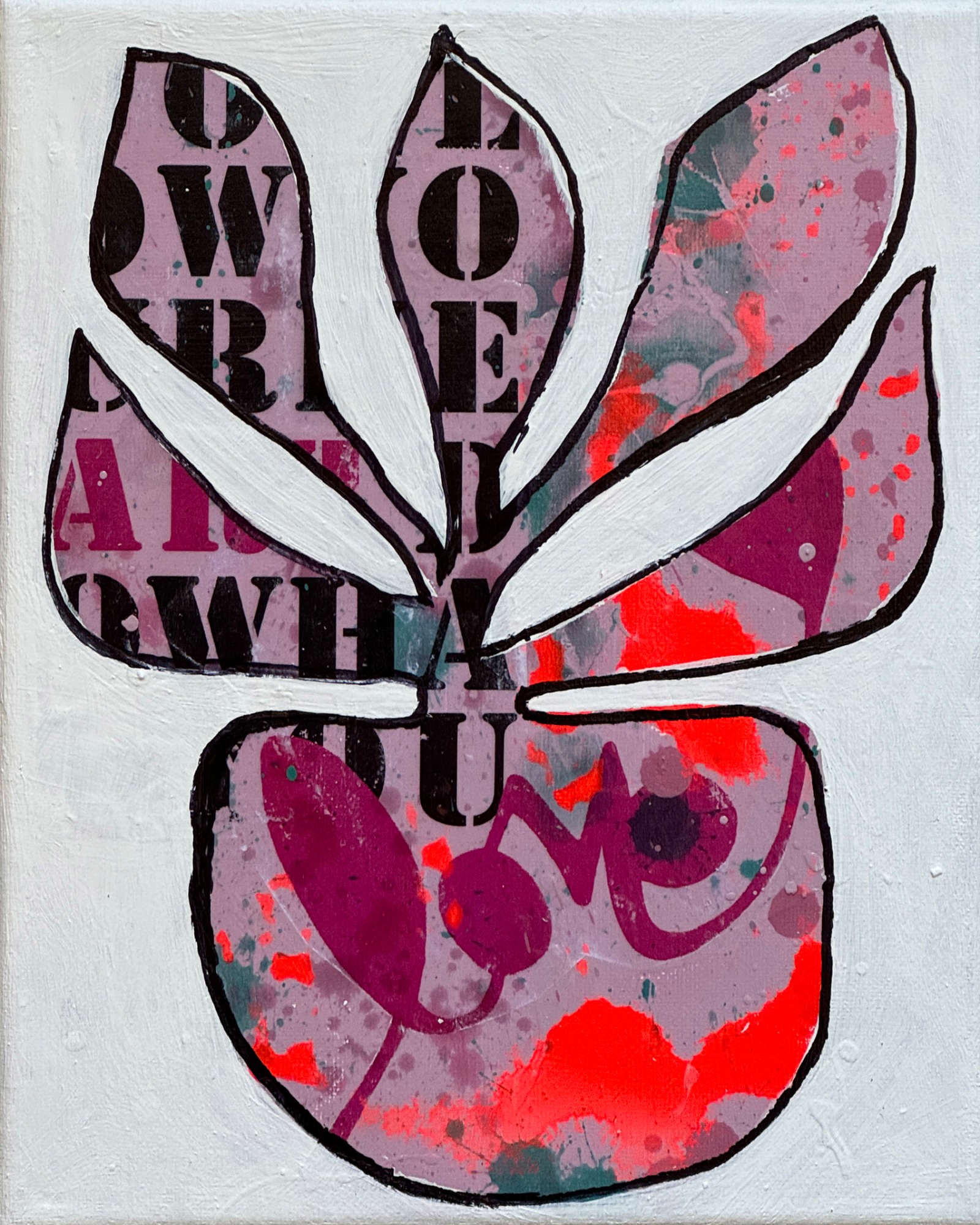 Playful, colorful and full of hope like the promise of spring, this series combines a naive floral silhouette with abstraction to birth a fresh new idea. Signed and ready to hang on stretched canvas. Coordinates with 3 other works for a set of 4.