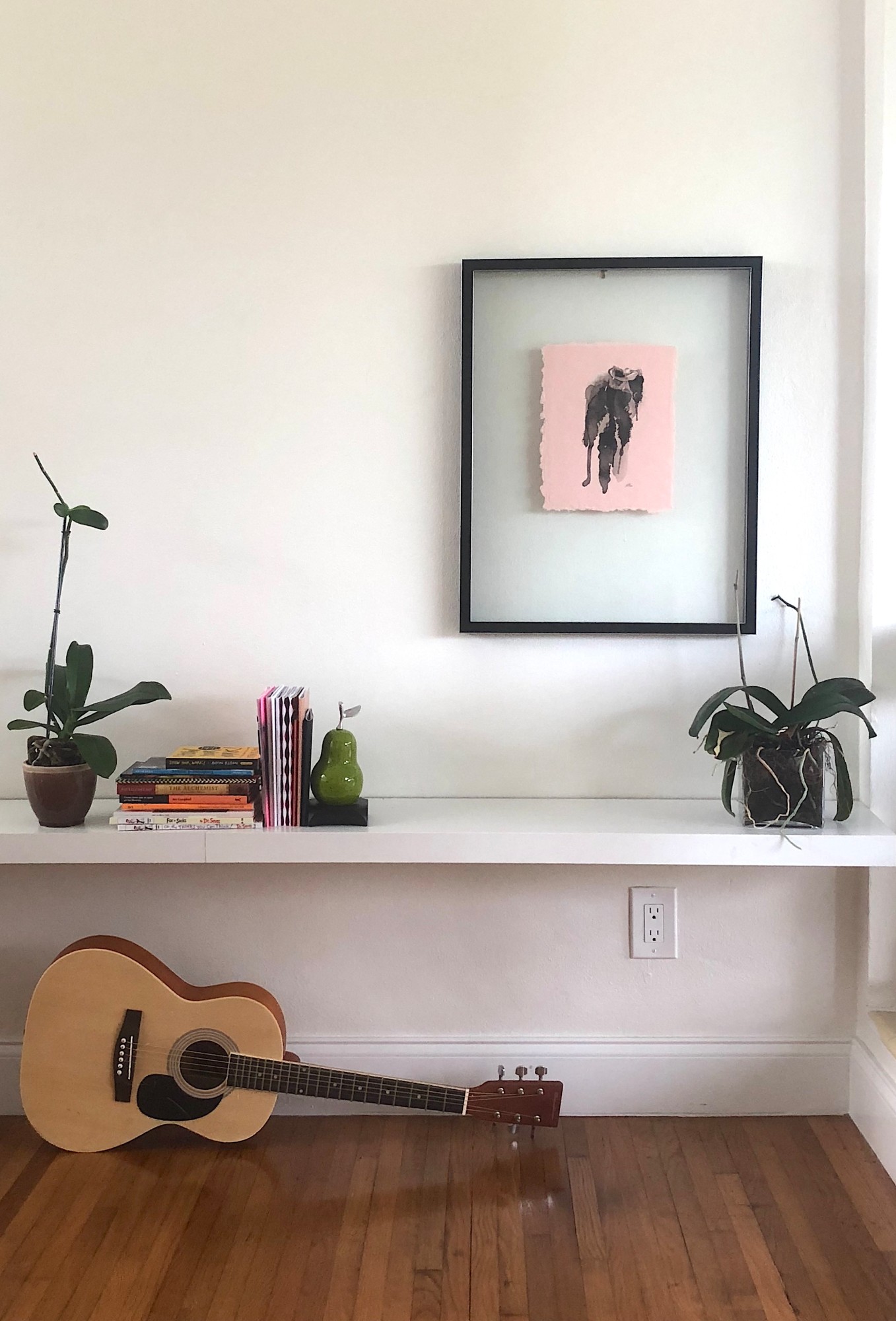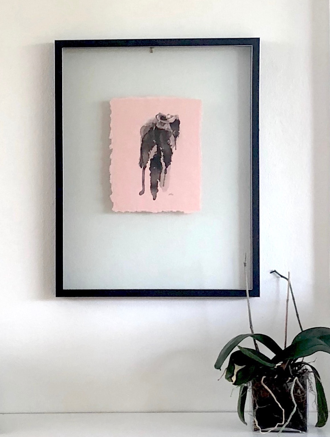 Piece is made on handmade paper framed sandwiched between non glare glass.