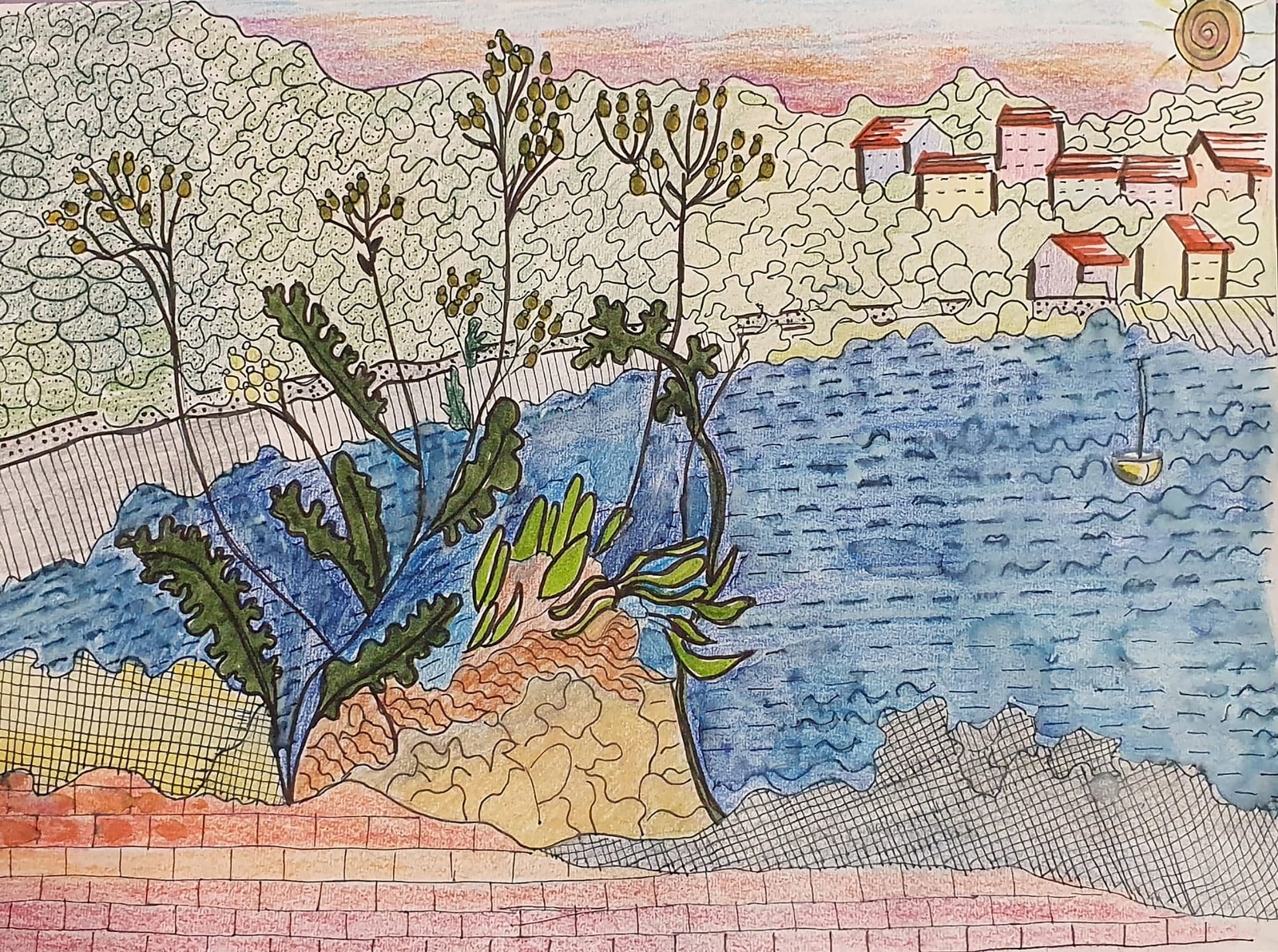"Perspektiva" (Serijal volim more), marker i akvarel, 20.5X28 cm, Veli Lošinj, 2023. godina