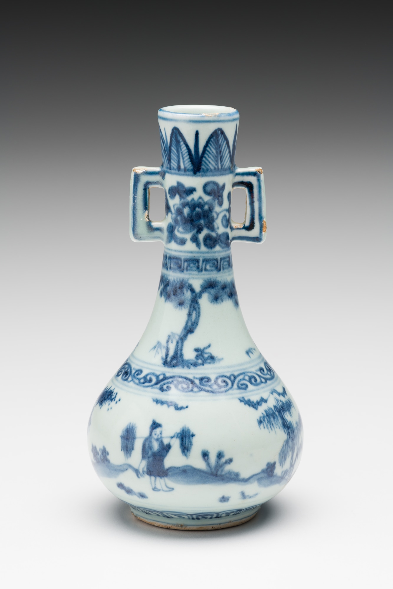 • Chinese Blue and White Vase with Handles, Ming Dynasty, ca. 1368-1644
