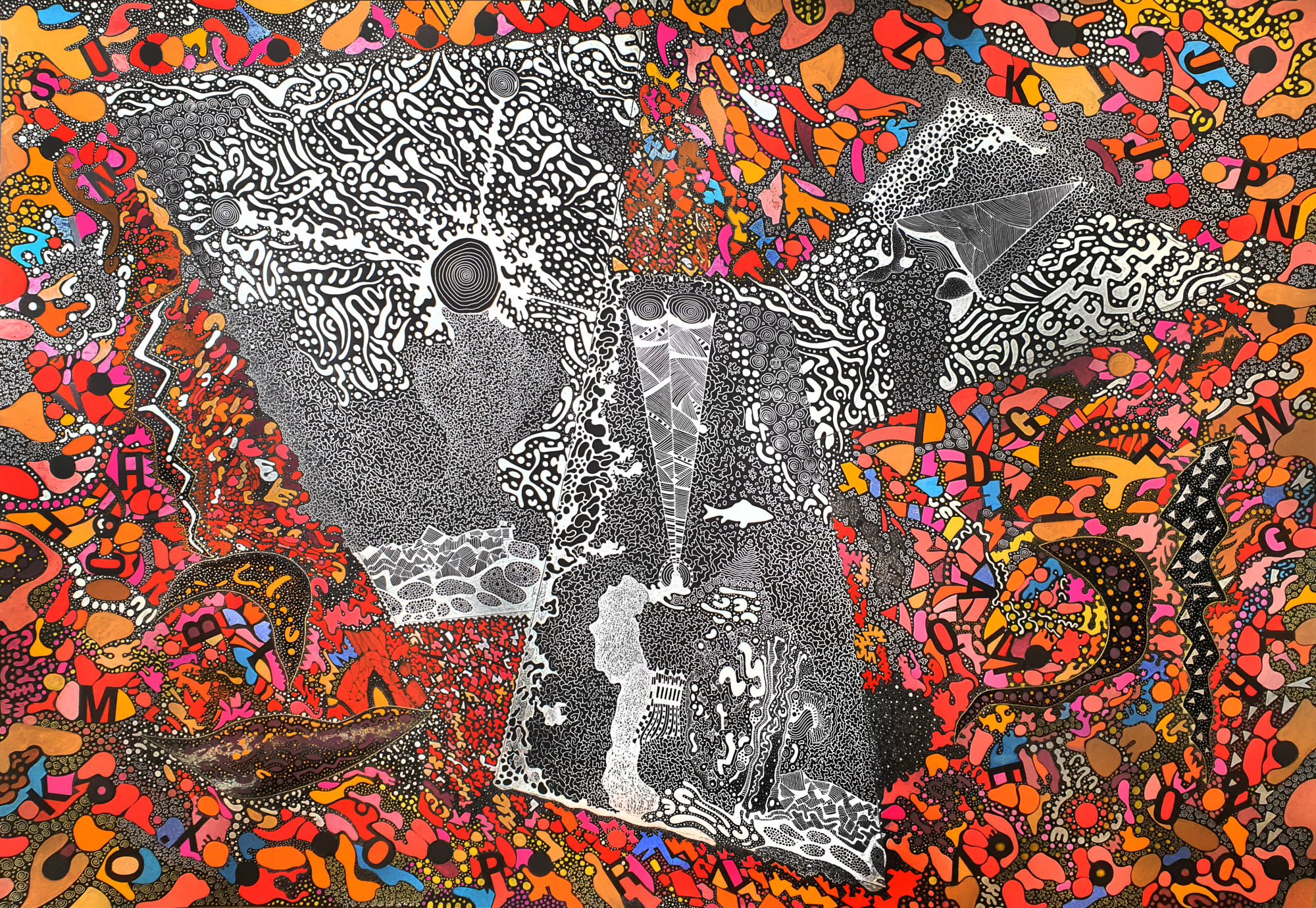 metallic pens on black paper markers, gel pens, pigment liners on white paper