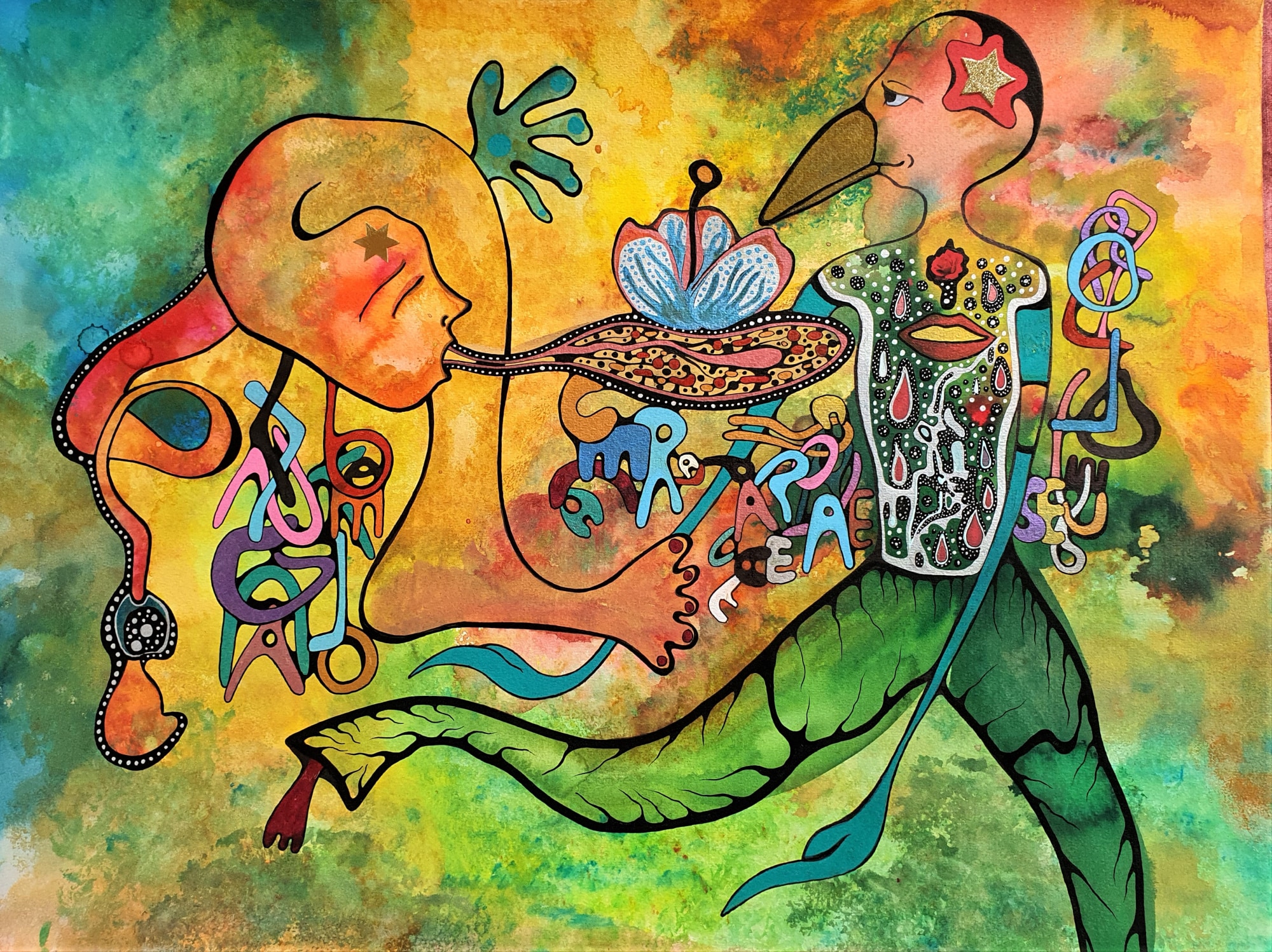 Hand-made drawing Water colors, China ink, Rapidograph, pigment liners