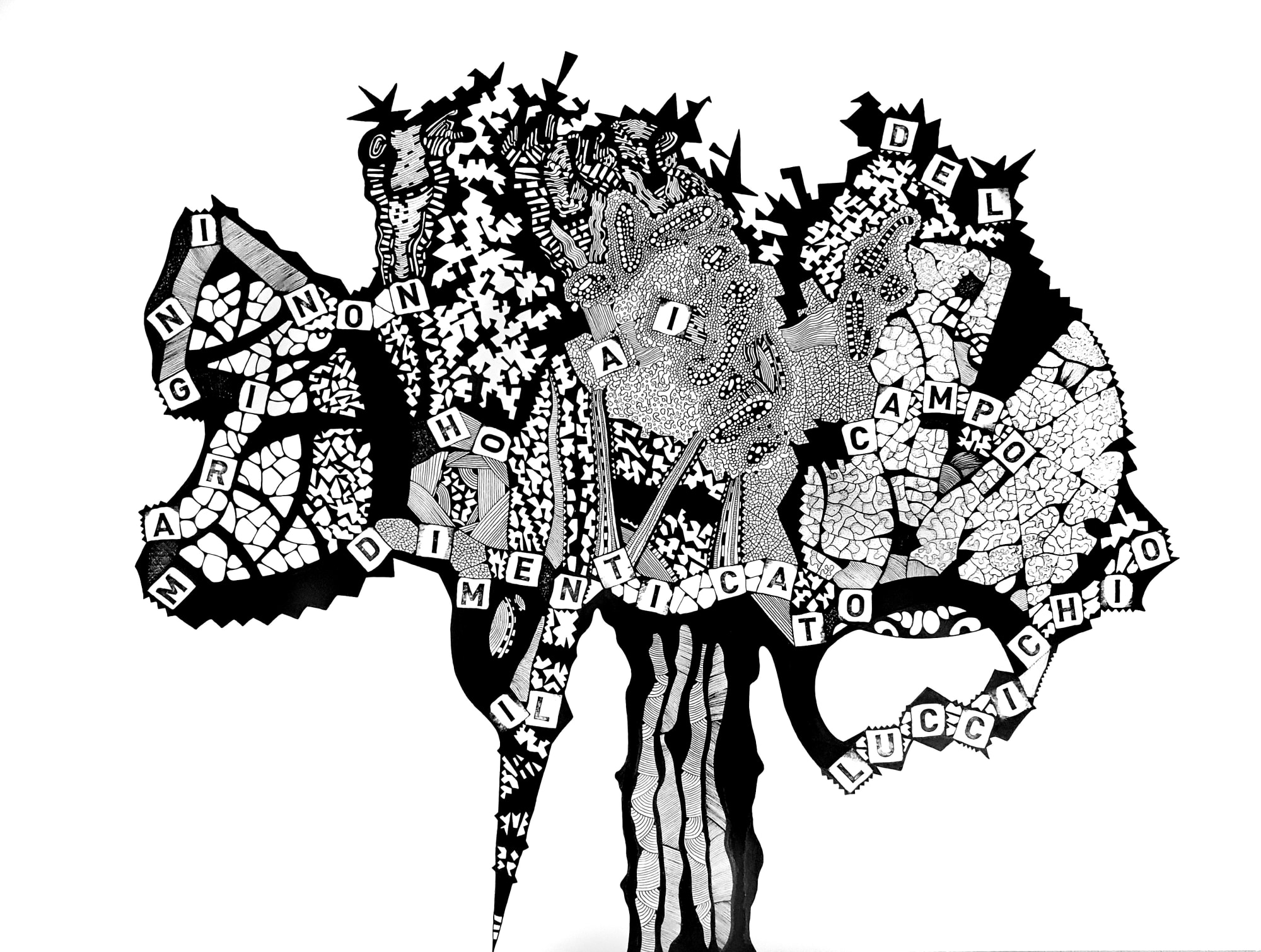 Pigment liners & stamped letters on paper