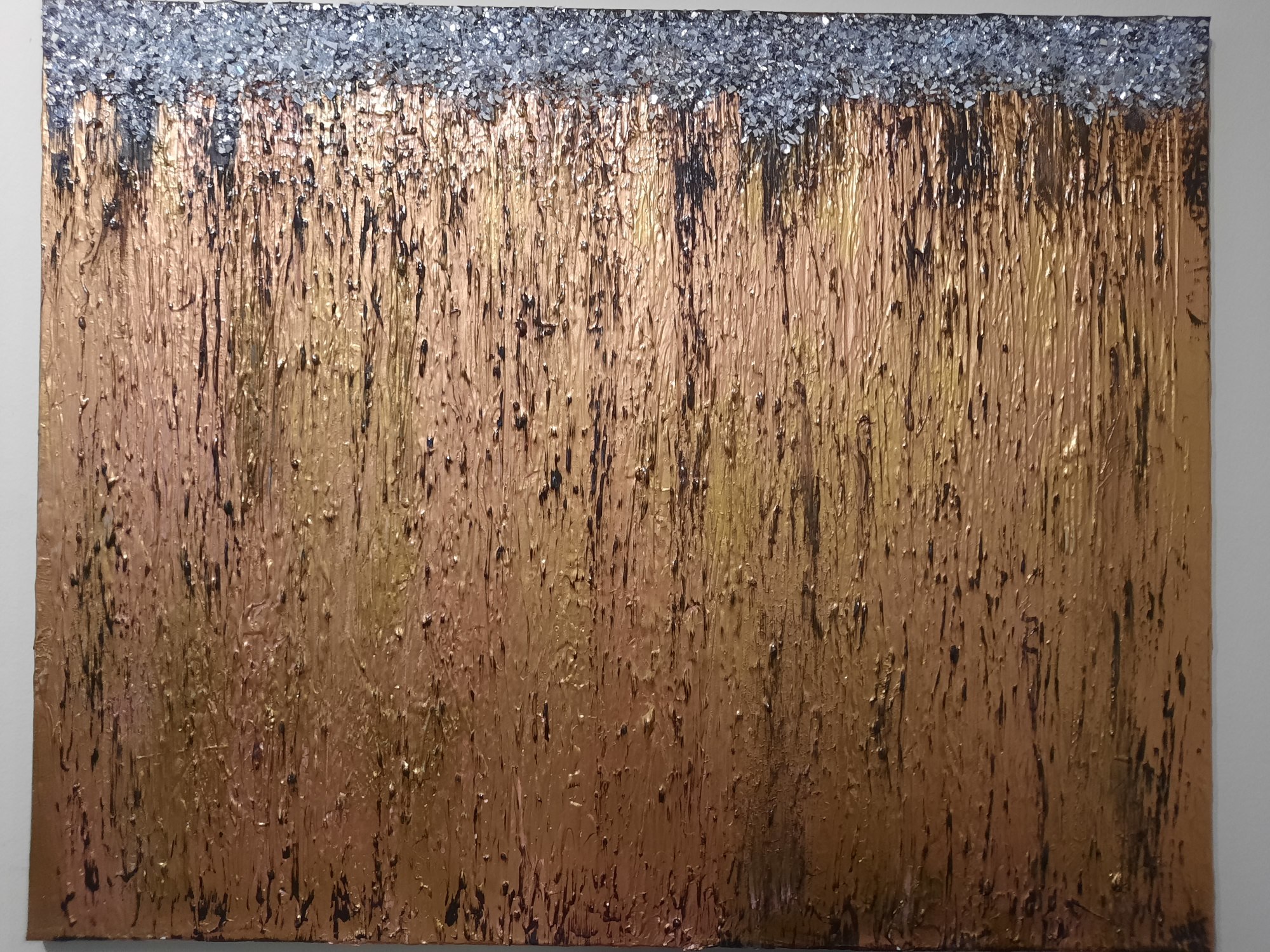 Textured gold, copper over black with broken glass top border