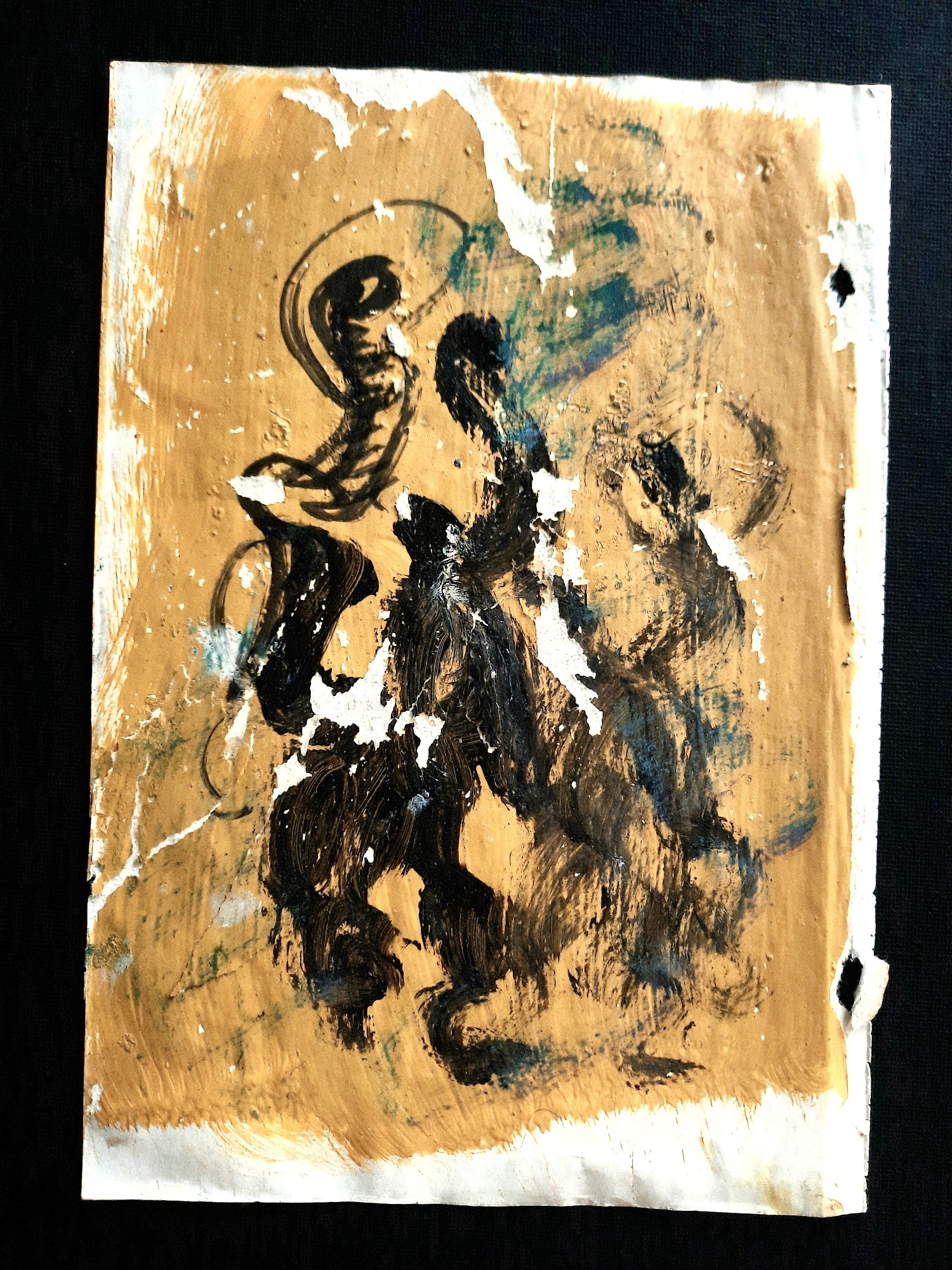 "Life Cycle", Classic Gold, Black, and Blue Dancers with Halos by Purvis Young, Image 5.