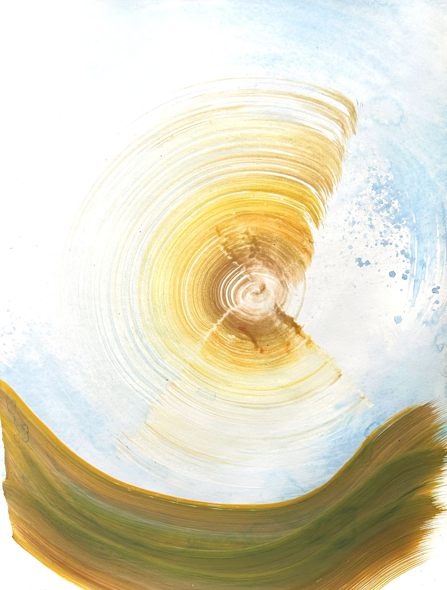 Layers of acrylic brush marks on acid-free paper. Ready to frame.