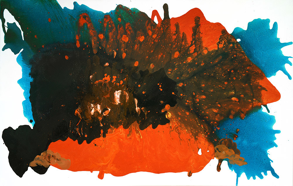 The poetic atmosphere of mountain lake, the beauty and aliveness of nature, colors mingle, and it is full of vitality. Acrylic colors with subtle brush marks and textures on canvas.