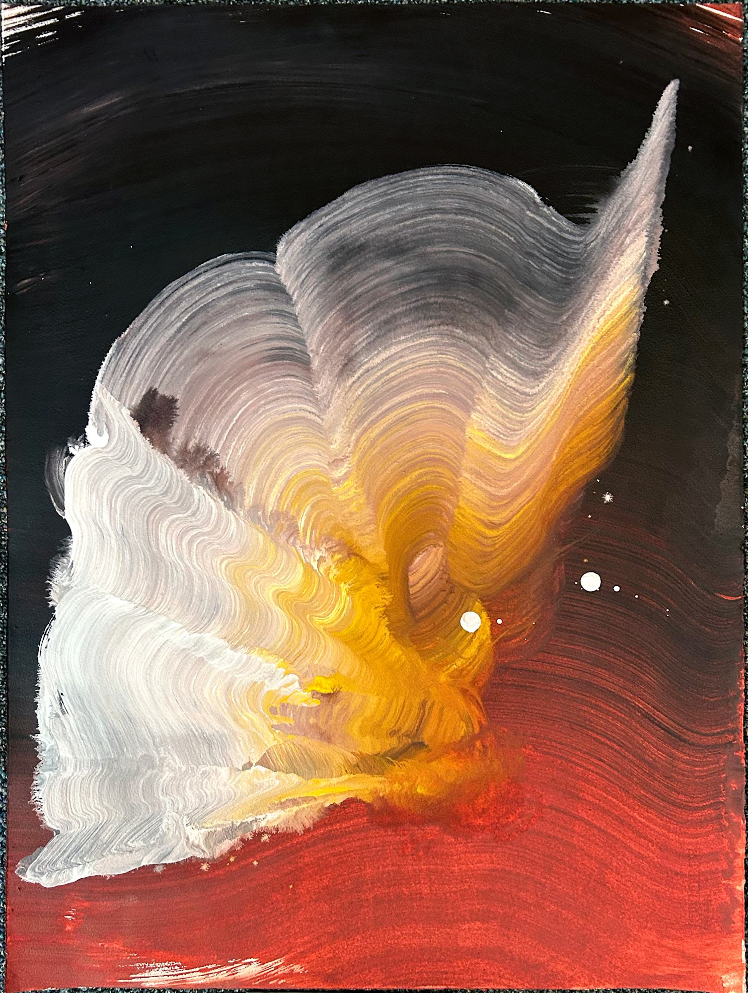 Acrylic on acid-free Arches paper with untrimmed deckle edge. Ready to frame.