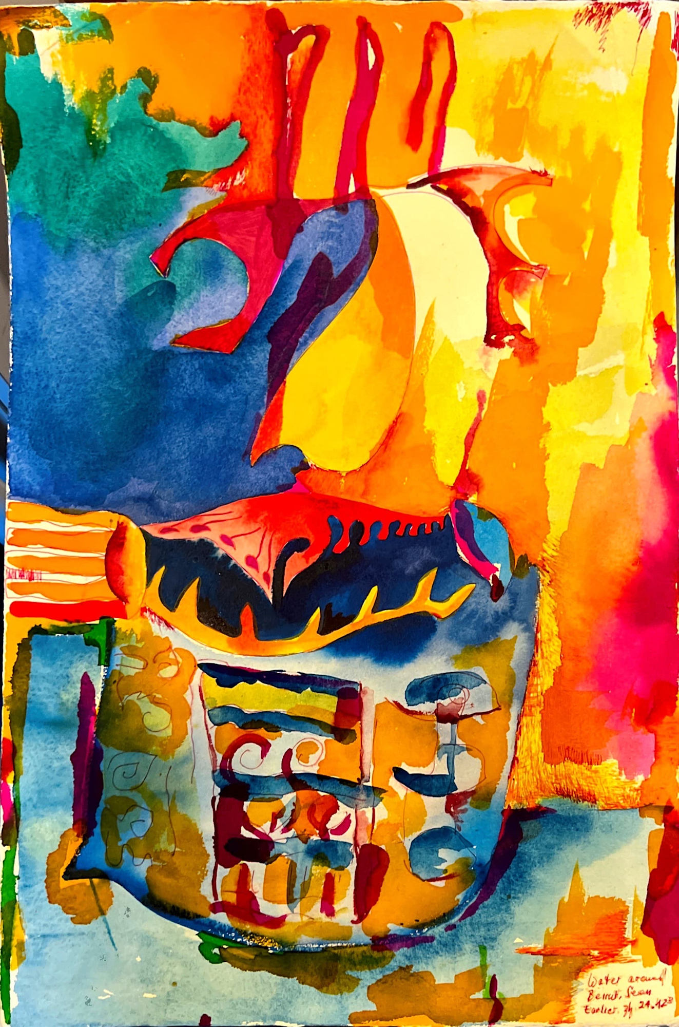 I began this piece alone in Beirut and completed it in Germany. I sold it to a delightful family.